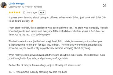 With over 50 miles of trails, DFW OFF ROAD TOURS offers a variety of terrain for all skill levels. From rocky climbs to scenic overlooks, there's something for everyone.
